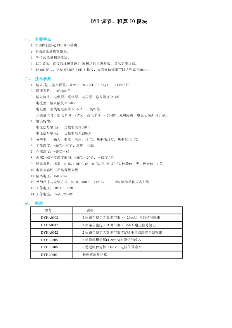 DYH調(diào)節(jié)、積算IO模塊