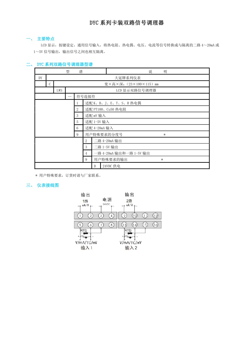 DYC系列卡裝雙路信號調(diào)理器