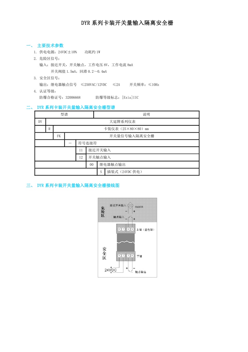 DYR系列卡裝開關(guān)量輸出隔離安全柵