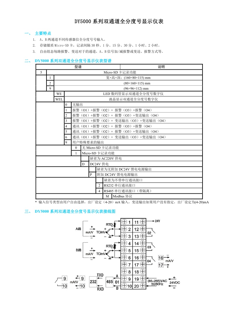 DY5000(WE)系列雙通道全分度號(hào)顯示儀表