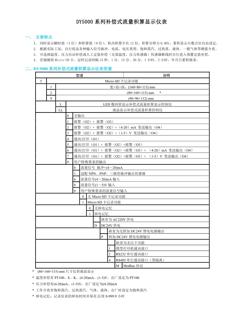 DY5000(L)系列補(bǔ)償式流量積算顯示儀表