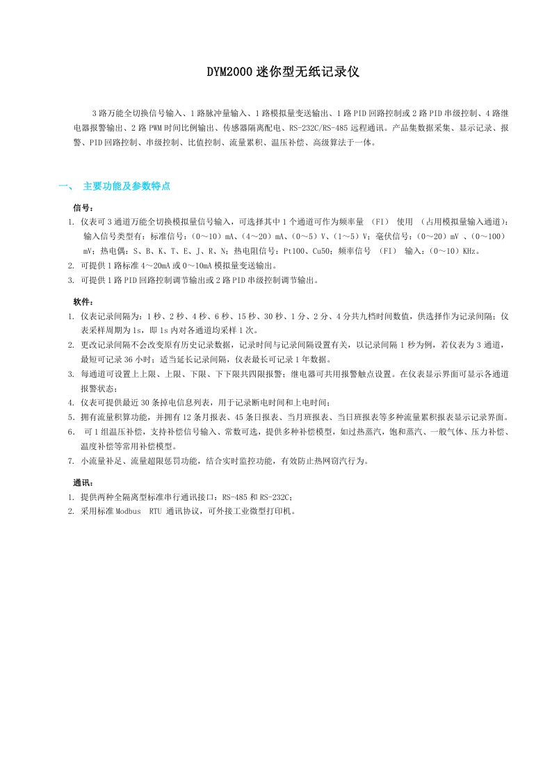 DYM2000迷你型無紙記錄儀