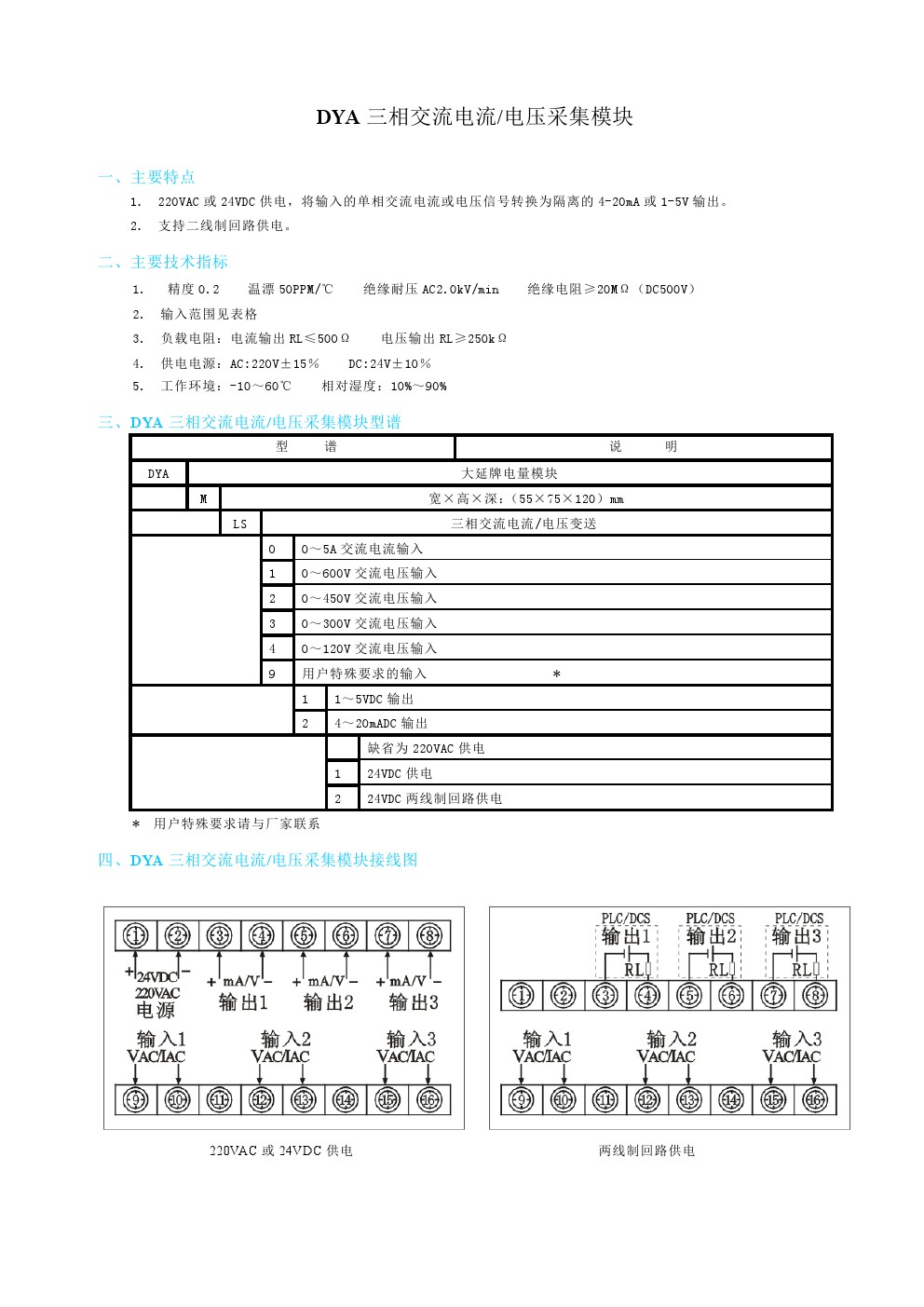 DYA三相交流電流/電壓變送模塊