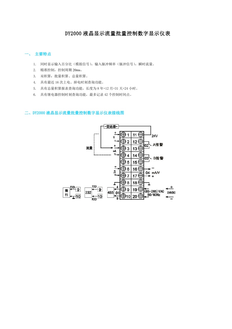 DY2000(HL)液晶顯示流量批量控制數(shù)字顯示儀表