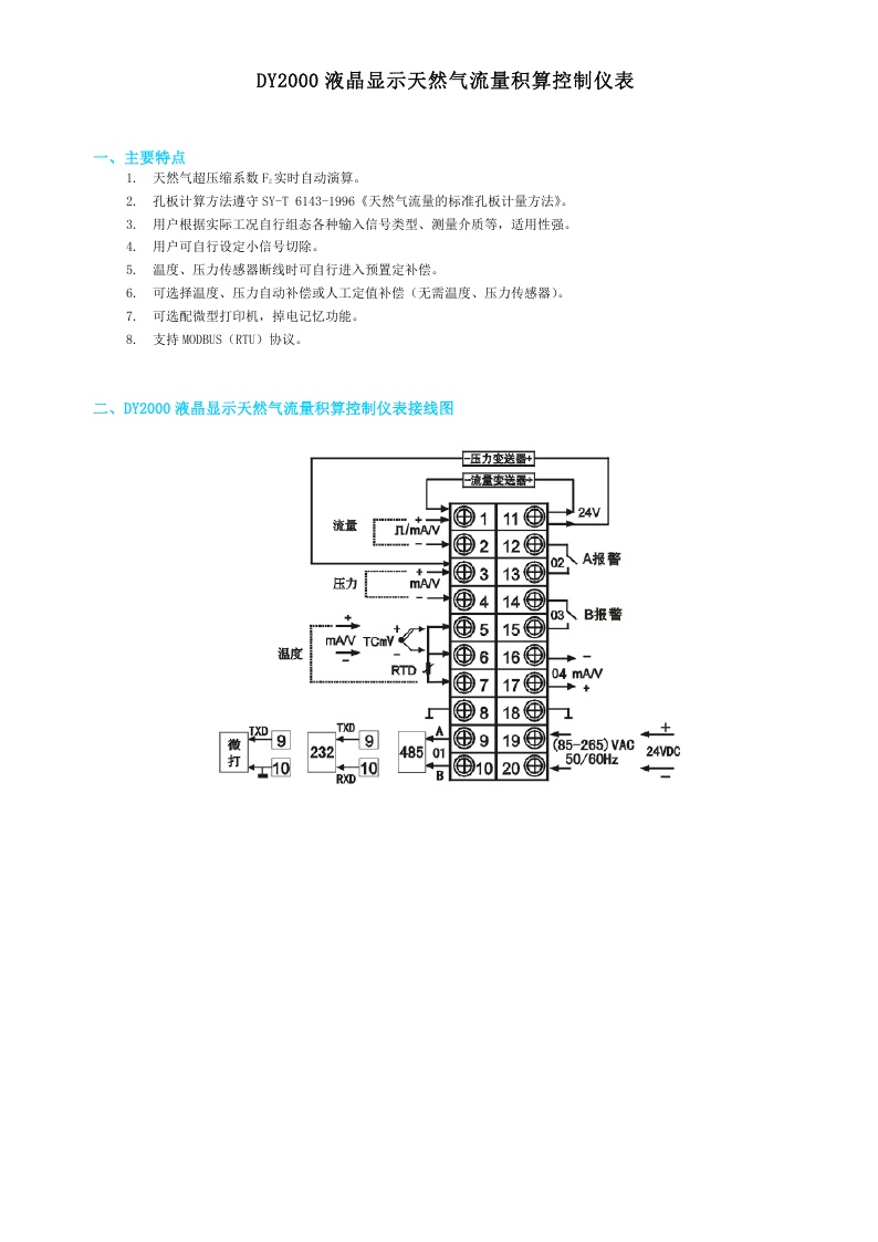 DY2000(NGL)液晶顯示天然氣流量積算控制儀DY22NGL6626P4M