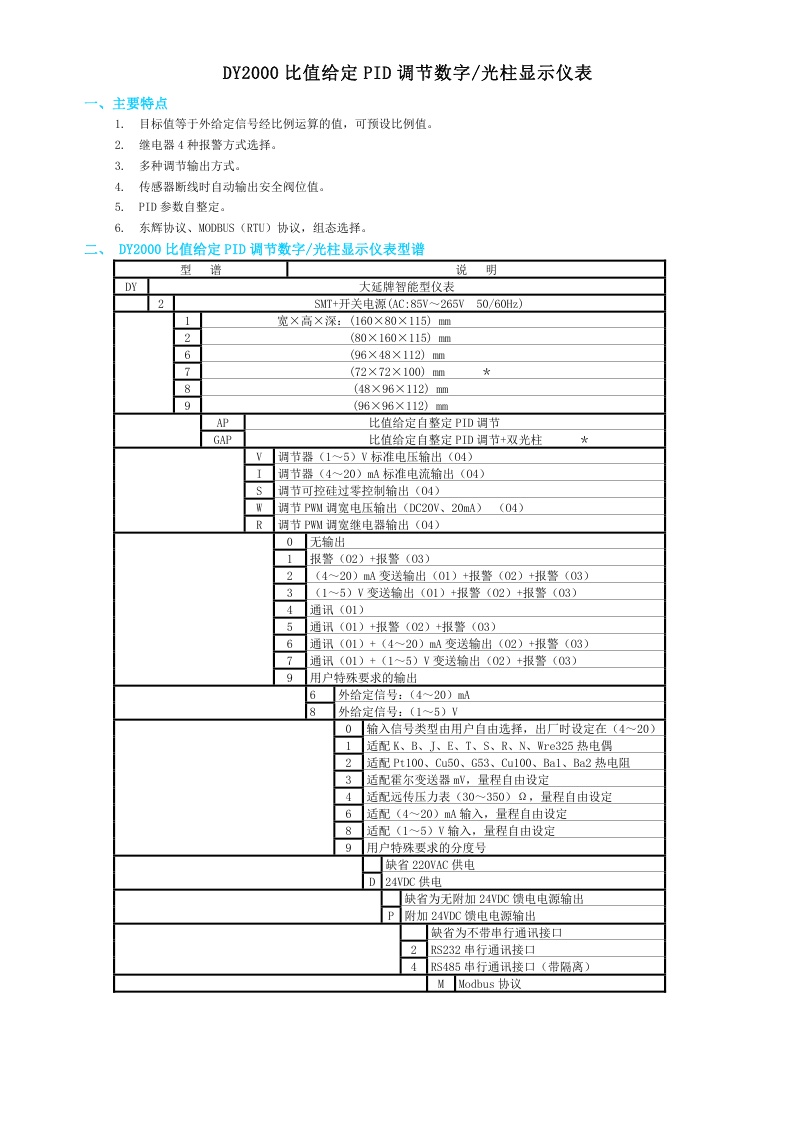 DY2000(AP)比值給定PID調(diào)節(jié)數(shù)字/光柱顯示儀表