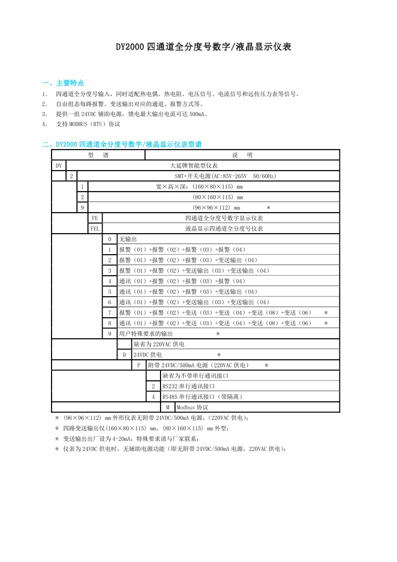 DY2000(FE)四通道全分度號數(shù)字/液晶顯示儀表