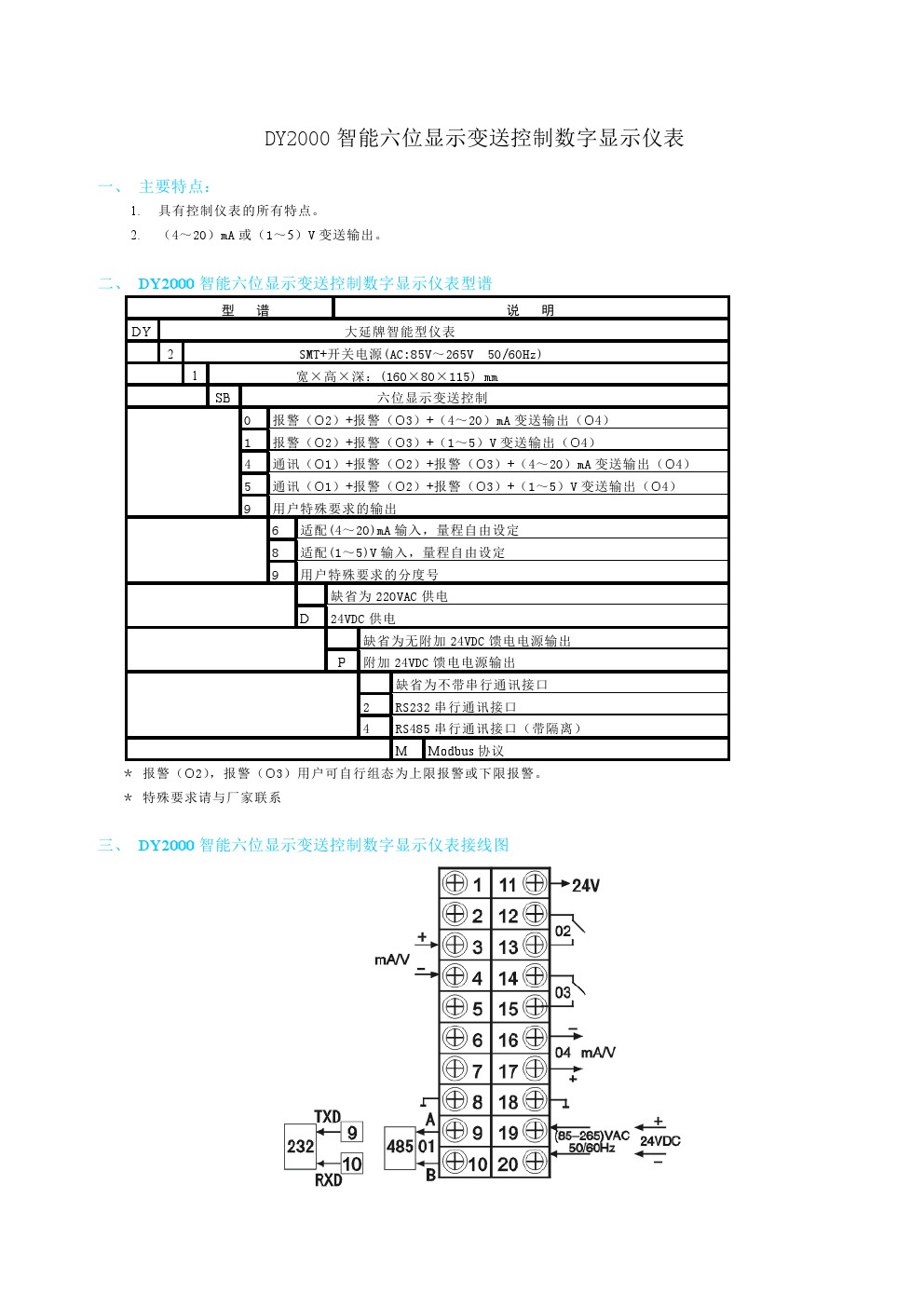 DY2000(SB)智能六位數(shù)字顯示變送控制儀表DY21SB06P