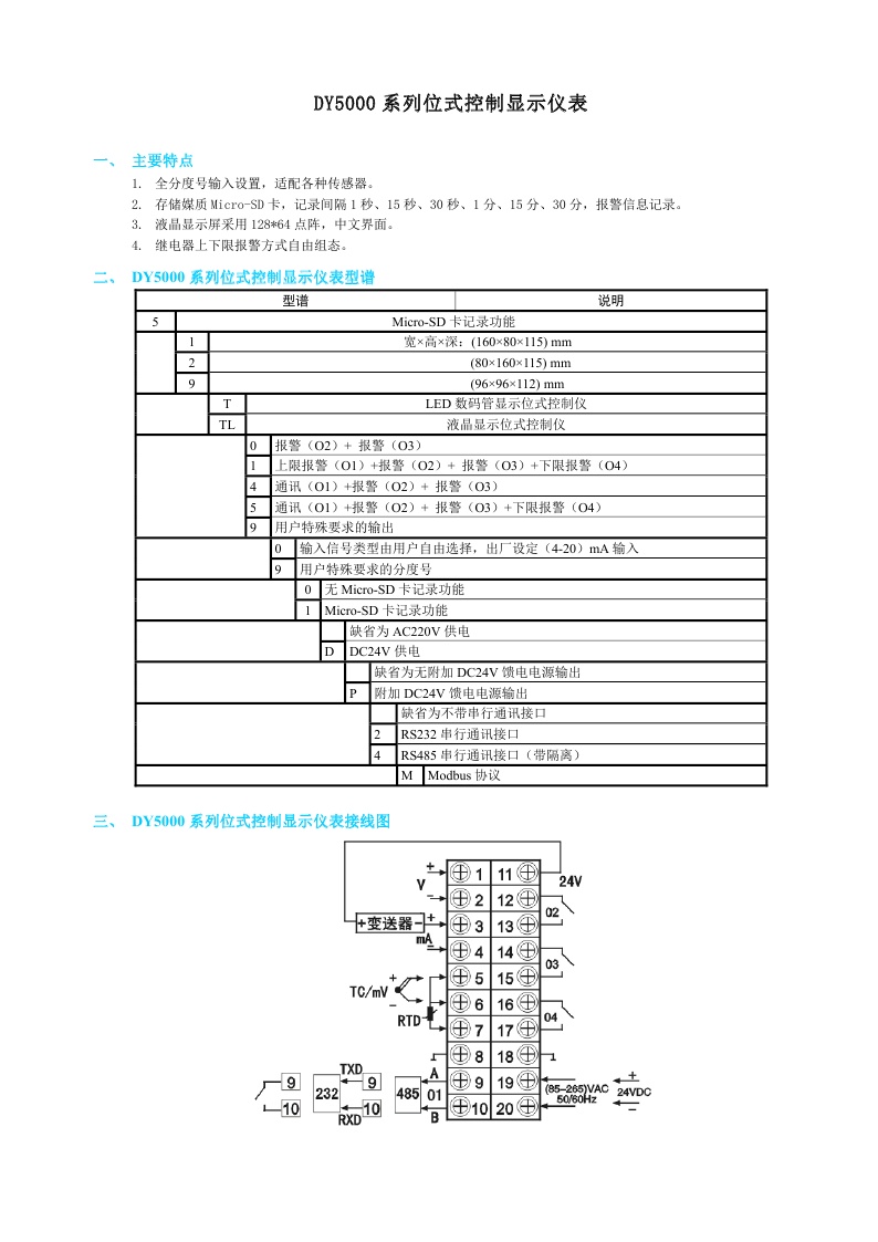 DY5000(T)系列位式控制顯示儀表