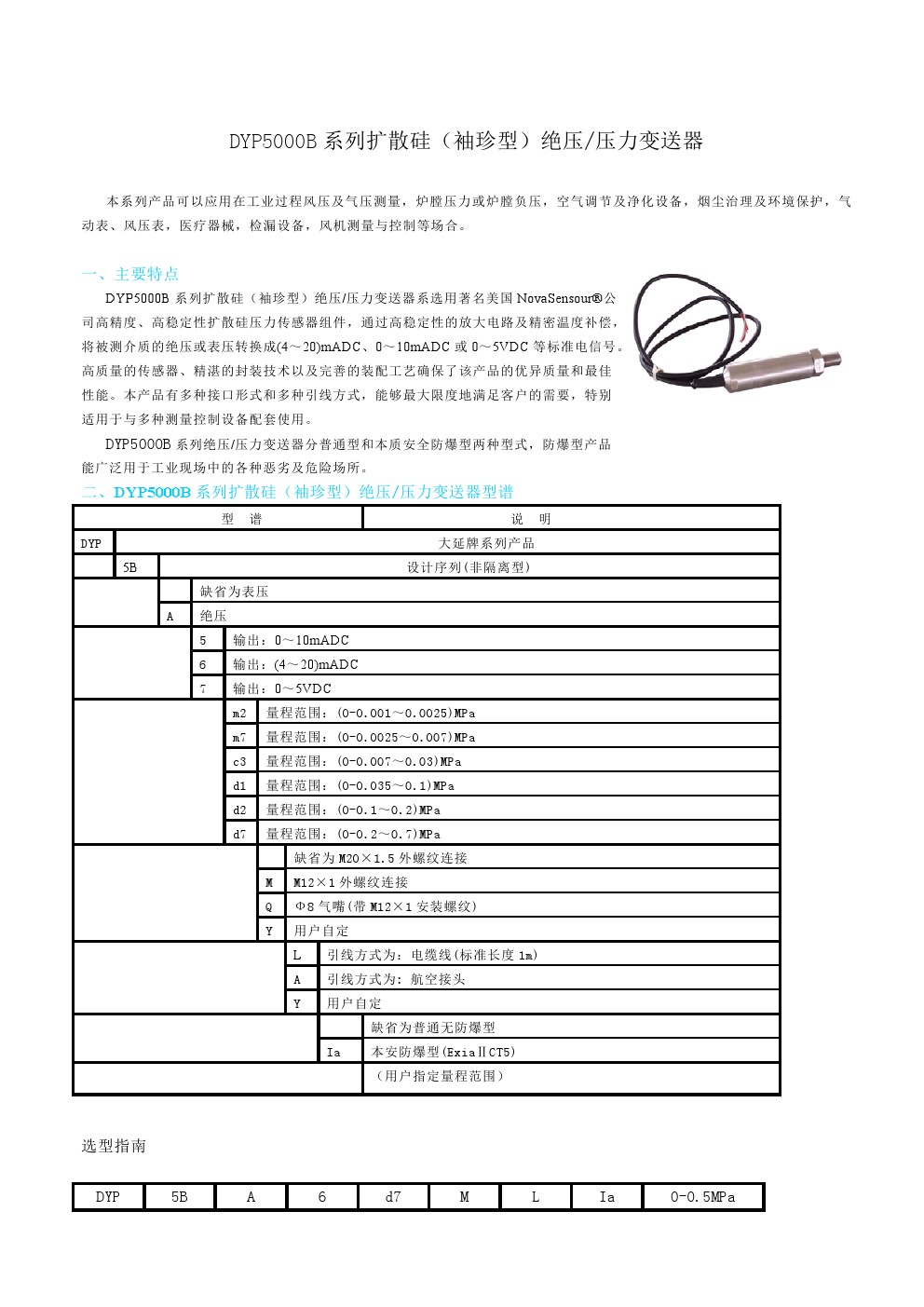 DYP5000B系列擴散硅(袖珍型)絕壓壓力變送器